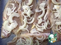 Я рекомендую не смазывать растительным маслом пергамент, так как у меня слегка подгорело, но только по краям, под рыбой все хорошо. 5) На противень с пергаментом перекладываем рыбу. |