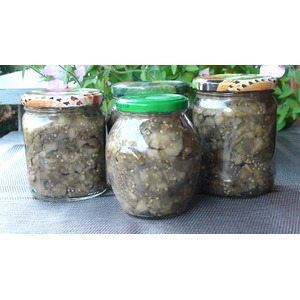 Количество баклажан не пишу, берете столько, сколько вам нужно. Баклажаны моем, накалываем ножом в нескольких местах, выкладываем на противень. Запекаем при температуре 180 градусов 40-50 минут, в зависимости от размера баклажан до готовности. Даём им остыть. Чистим, нарезаем произвольными кусочками, каждый почищенный и нарезаный баклажан немного подсаливаем. Когда все баклажаны будут подготовлены, хорошо их перемешаем и укладываем плотно в стерильные баночки. Накрываем крышкой, её я тоже стерилизовала. Ставим баночки в кастрюлю, на дно кладем х/б ткань, заливаем водой по плечики банок и стерилизуем с момента закипания 30 минут. После этого в каждую банку нальем растительное масло 1-2 ст ложки и закрываем плотно крышкой. Переворачиваем, укутываем пледом и оставляем до полного остывания. Храним в прохладном темном месте. Вкусных вам заготовок!