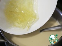 Поставить кастрюлю на плиту и прогреть молоко до полного растворения сахара. Добавить в горячее молоко отжатый желатин. |