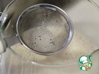 Через мелкое сито процедить молоко в удобную для разливания ёмкость (у меня это большой заварочный чайник). |