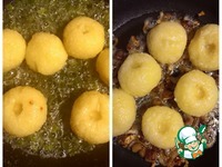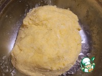 Выбрать четверть картофельной массы и уложить поверх основной, а в получившееся углубление насыпать картофельный крахмал. Больше сыпать не нужно! |