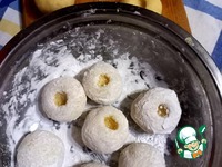 Скатать крупные шарики и пальцем в каждой сделать небольшое углубление. |