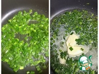2 вариант: зелёный лук нарезать и хорошо потомить в сливочном масле до мягкости лука. Посолить по вкусу. |