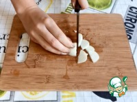 Теперь подготовим овощи для начинки. Мякоть кабачка нужно нарезать маленькими кубиками. |