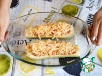 Форму для запекания или противень смазываем растительным маслом. Выкладываем половинки кабачков и наполняем их начинкой. |