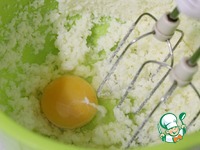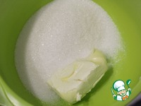 В другую миску всыпать сахар, добавить мягкое сливочное масло и взбить миксером до пышной светлой массы. |