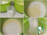 В 2-3 приема поочерёдно добавить с масляной смеси молоко и мучную смесь, перемешивая миксером после каждого добавления. |