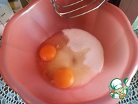 Взбить яйца с сахаром и ванильным сахаром до белой пышной массы. |