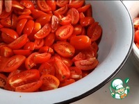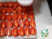 Откидываем помидоры на дуршлаг, чтобы стекла вода. Раскладываем помидоры на решётку и даем просохнуть 2 часа. |