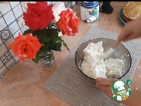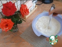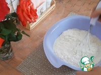 Добавляем половину просеянной муки. Хорошо перемешиваем. |