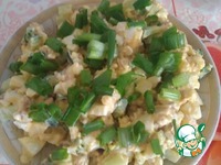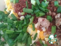 Описание: Да, это так. как ни странно звучит, в общем то, салат. как и у многих, получился у меня из "остатков праздничного стола", собственно, как у многих))). Но на удивление теперь делаю его чаще, ингредиенты оказались удачно совместимы, а фарш почему-то напоминает в салате орехи, по крайней мере, у меня). Можете добавить например, жареный картофель, будет еще лучше, просто у меня не было времени. Выдвигаю на ваш суд и с удовольствием жду комментариев!