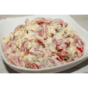 Сметану смешать с горчицей, заправить салат, перемешать. |