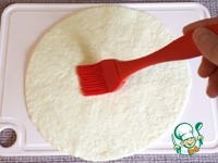 Лепешку в двух сторон слегка смазать растительным маслом. |