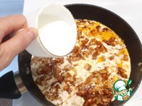 Добавить в сковородку молоко или сливки, дать покипеть 1 минуту. |
