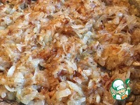 Много лука порезать полукольцами, обжарить на сильном огне на растительном масле с добавлением сливочного, минут через 10 посолить, чтобы вытопить быстрее сок из лука и его испарить. |
