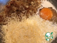 Лук смешиваем с яйцом, сливками, сыром, если нужно - досаливаем. |