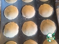 В духовку на 180 гр ставим корзиночки, через 15 минут достаем, смазываем желтком и до румянца обратно запекать. Корзиночки очень легко вынимаются из формочек. |