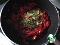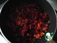 Следом - натёртую свёклу. Перемешиваем и томим до готовности минут 12-15 под крышкой. |
