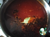 Выкладываем заправку в бульон, где картофель уже сварился. Добавляем фасоль из банки. Доводим до кипения, солим, кладём лавровый лист и варим всё ещё минут 5. |