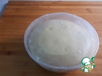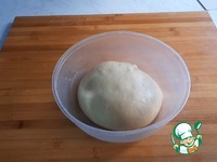 Замешиваем тесто. Убираем в миску смазанную растительным маслом. Прикрываем пищевой плёнкой и оставляем на подъем на 1.5 часа. |