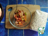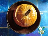 Выкладываем необходимый объём приготовленных овощей в посуду. Смотрите по своей тыкве. У меня немного овощей осталось. Их можно потом использовать, это не страшно. |