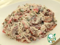 Сметану смешать с горчицей, заправить салат, перемешать. |