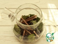 Чайник ополоснуть кипятком, затем поместить в него все ингредиенты. |