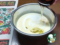 В полученную массу порционно (в 2-3 этапа) просеиваем сухие ингредиенты. Каждый раз хорошо перемешиваем, чтобы не осталось комочков муки. |