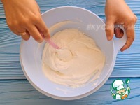 К творогу добавляем 4 желтка, разрыхлитель, ванильный сахар и сметанно-йогуртовую массу и все пробиваем погружным блендером до гладкости. |