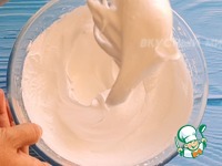 К белкам добавляем соль, взбиваем миксером до пены, затем постепенно всыпаем сахар и взбиваем до плотных пиков. |