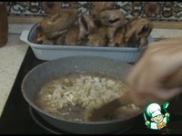 После того как обжарим перепела, в эту сковородку выкладываем нарезанную луковицу и измельченный чеснок. Жарим в этом же масле 3 минуты, если нужно немного добавим подсолнечного. |