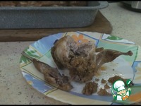 Фаршируем перепелок. Форму для запекания я ничем не смазывала. Этой начинки как раз идеально хватило на 8 перепелок. Сверху можно положить ещё несколько кусочков сливочного масла. |