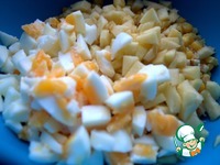 Описание: Салат-пятиминутка. Готовится быстро, пока варятся яйца. Яркие цвета осени поднимут Вам настроение. Такой салат можно взять с собой.