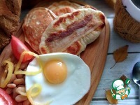 Дожариваем до готовности. Бекон поджарится, зарумянится вместе с краями теста, пропитается оладушек растопленным салом. ММММММММММ... очень вкусно! |