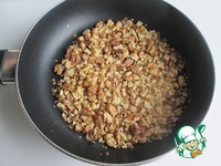 Сухую сковороду нагреть, добавить измельчённые орехи и обжарить до появления характерного приятного запаха. |