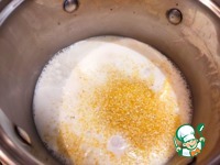 Молоко или сливки доводятся до кипения. Медленно высыпается полента, хорошо перемешивается. Мешать нужно в одном направлении. |