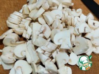 Готовую поленту снимаем с огня и даем немного настояться. Теперь займемся грибами. Шампиньоны необходимо помыть и тонко нарезать слайсами. |