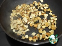 В конце жарки добавляем тонко нарезанный чеснок. |