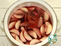 Затем добавить вымытые яблоки, нарезанные на произвольные кусочки без сердцевины и варить с момента закипания еще минуты 3, снять с огня. |