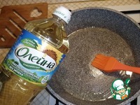 В разогретую сковороду налить одну столовую ложку подсолнечного масла ТМ "Олейна" и хорошо смазать кисточкой. |
