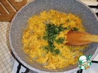 Добавить мелко нарезанную петрушку, куркуму, посолить и поперчить по вкусу. Хорошо перемешать, продолжаем готовить 2-3 минуты. Дать остыть. |