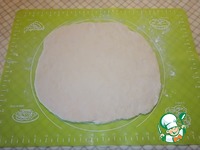 За это время на слегка присыпанной мукой поверхности раскатать тесто, у меня 25 см. |