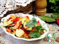 Описание: Острый и хрустящий салат из осенних корнеплодов - редьки и моркови. Сладкий перец придаёт приятный вкус. Салат вкуснее становится, когда настоится и вкусы овощей перемешаются. Идеальный закусон!