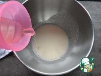 В дежу всыпаю сахар, ванильный сахар, добавляю яйца и взбиваю до светлой густой массы. Продолжая взбивать, частями добавляю мягкое сливочное масло и вливаю тонкой струйкой растительное масло. |