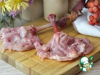Освободить куриное филе от кости, удалив жилки, хрящики с мяса и кости. Вывернув мясо, получится куриное филе на косточке. |