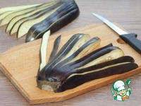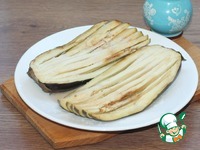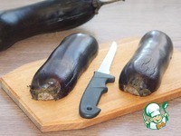4. На половинках баклажан делаем надрезы не дорезая немного до плодоножки. |