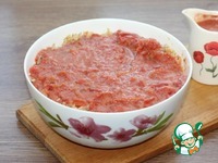 10. Приготовим томатный соус. Выкладываем помидоры из банки в большую миску и измельчаем. |