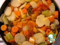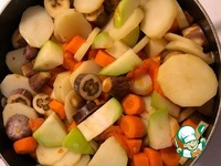 Описание: Овощное осеннее блюдо, приготовленное в собственном соку. При желании можно его превратить в овощную икру, так как овощного бульона не так много. Вода используется только для мытья овощей. Ни один ингредиент не жарится. Для тех, кто редко кушает оранжевые овощи и нуждается в хорошем усвоении витамина А - может добавить масло холодного отжима непосредственно в тарелку, чтобы получить максимум пользы от не окисленных жиров.