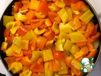 11. Крошим перец средними кусочками и выкладываем сверху остальных овощей. Греем еще 10 минут. |