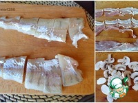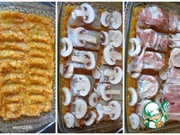 Судака и бекон нарезать на порционные кусочки, шампиньоны пластинками. |